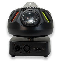 The AVE GRAVITRON-V3 Dual-Effect Moving Head Lighting with Laser Effects is a compact, tour-ready fixture that combines dual 360° rotating RGBW moving heads, a central 10 W RGBW magic ball, and integrated red and green lasers to create sweeping beams, kaleidoscopic patterns, and sharp mid-air graphics for DJs, venues, and production setups. It offers flexible control via 16-channel DMX, Auto, Sound-Active, Master/Slave, and an included IR remote, with an intuitive OLED menu for settings, display inversion, and factory reset. With electronic dimming, high-speed 20 Hz strobe capability, energy-efficient 50 W draw, and universal 95–245 V input, the GRAVITRON-V3 delivers stadium-style visual impact in a lightweight, portable, and professional-grade fixture.
